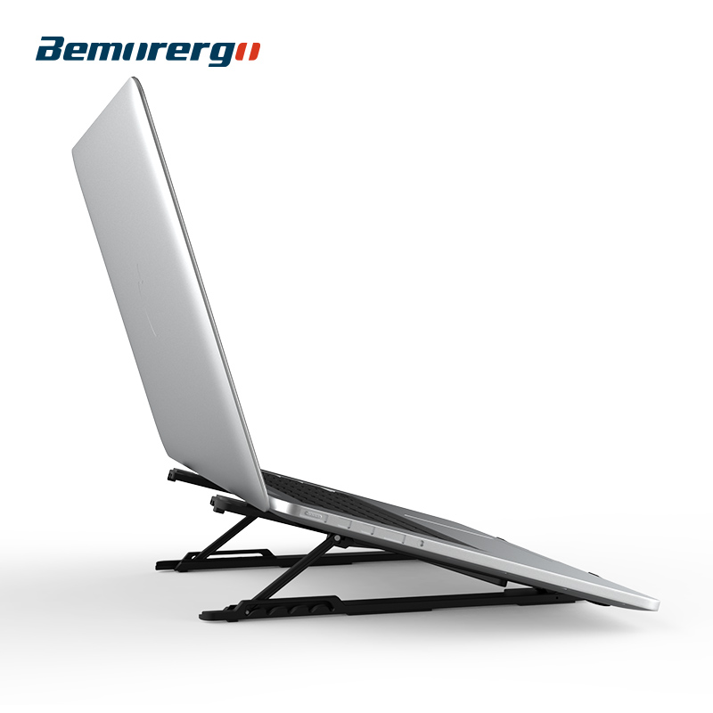 The laptop holder offers 5 levels for height adjustment, elevating your laptop to the perfect viewing height. Helps to protect your eyes and improve the body posture over long hours of working on the notebook. The triangular structure with high-strength aluminum alloy material has strong supportability.  This laptop stand is suitable for 11 "to 15" computers up to 5 kg /11 LBS  .It is lightweight and can be easily folded into a 11.4” long strip.It's convenient to carry for business trip or any place you go.